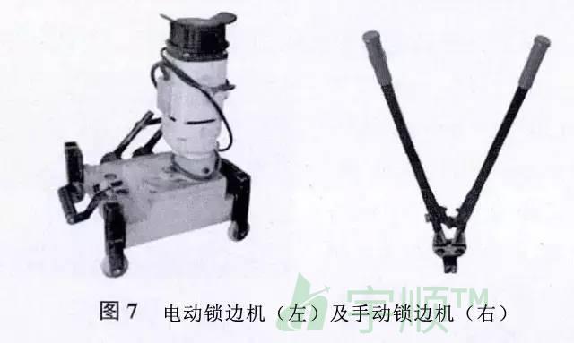 1)電動鎖邊機(jī),用于鎖緊板肋,使板與固定座連結(jié)牢固,見圖7(左)。