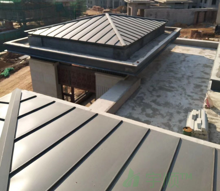 1)所用鋁鎂錳合金材料既有相當(dāng)?shù)膹?qiáng)度,又有很好的柔韌性,特別適合三維曲面等復(fù)雜造型的屋面;